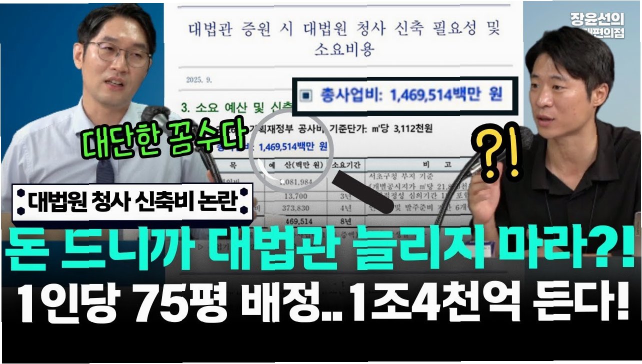 더불어민주당의 대법관 증원 추진에 법원행정처가 '서울 서초동에 대법원 청사를 신축해야 한다'고 주장하며 논란이 일고 있습니다. 대법관 1인당 75평 규모의 집무실과 부속실을 배정해야 한다는 이유로 1조 4695억 원의 신축 비용을 책정했기 때문입니다. 이는 여당으로부터 '황당무계한 핑계'라는 비판을 받으며 조희대 대법원장 사퇴 요구에 불을 지피는 결과를 초래했습니다.