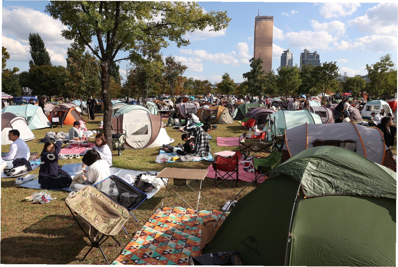 텐트, 베란다 공유… 명당 확보를 위한 다양한 시도