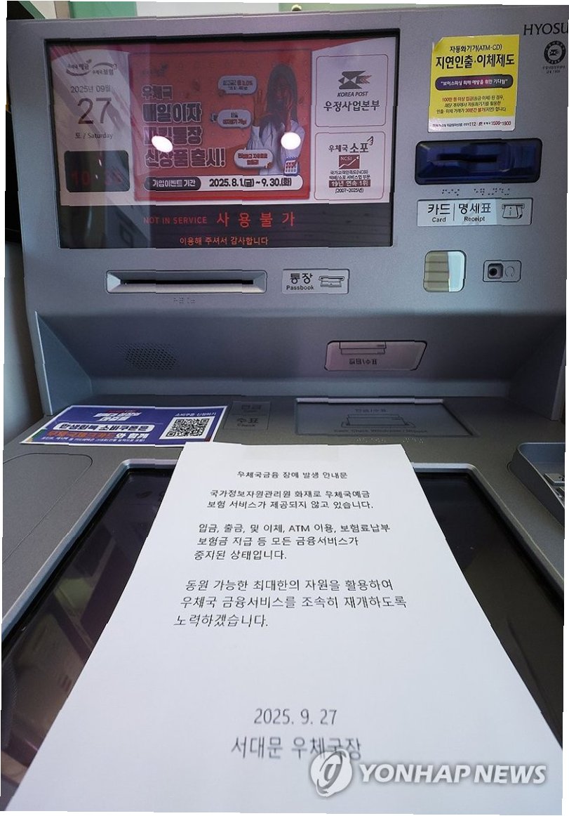 국가정보자원관리원 화재로 인해 우체국 금융 서비스가 전면 중단되면서, 금융 취약 계층의 어려움이 커지고 있습니다. 입·출금, 계좌 이체, ATM 사용 등 일상적인 금융 서비스가 막히면서, 많은 사람들이 불편을 겪고 있습니다. 우정사업본부는 빠른 복구를 위해 노력하고 있으며, 금융 소비자 피해를 최소화하기 위해 최선을 다하고 있습니다. 이번 사태는 디지털 시대의 위험성과, 금융 시스템의 안정성 확보의 중요성을 다시 한번 강조합니다.