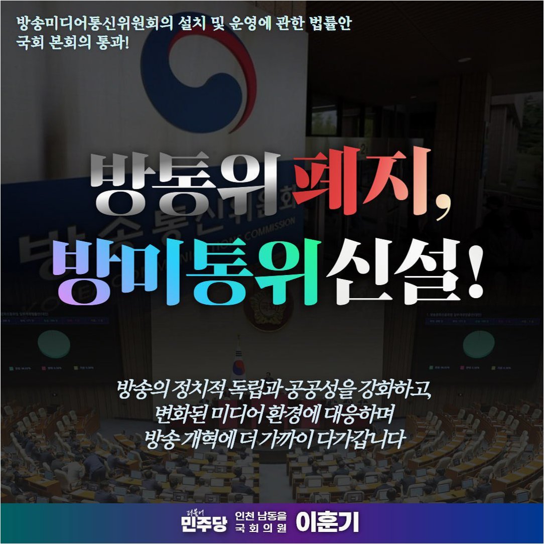 27일, 국회에서 기존 방송통신위원회를 대체하는 '방송미디어통신위원회' 설치 법안이 통과되었습니다. 이 결정은 방송 및 미디어 환경의 변화에 발맞춰 새로운 거버넌스 체계를 구축하려는 시도로 풀이됩니다. 법안 통과 과정은 여야 간의 치열한 공방 끝에 이루어졌으며, 특히 국민의힘의 필리버스터가 종결된 후 표결이 진행되었습니다. 이로 인해 방송통신위원회의 구조와 운영 방식에 큰 변화가 예상됩니다.