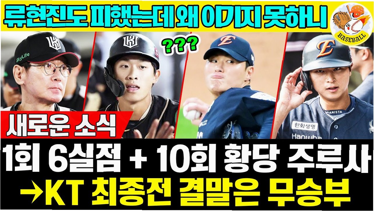 KT는 한화와의 경기에서 아쉬운 무승부를 기록하며 5위 진출의 경우의 수를 놓쳤다. 김민혁의 주루 미스가 결정적이었으며, 이제 NC의 경기 결과에 5위 여부가 달려있다. 이강철 감독과 선수단은 아쉬움을 감추지 못하며, NC의 패배만을 간절히 바라고 있다.