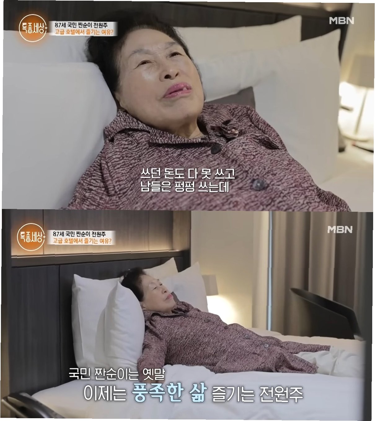 전원주는 공연 후 집 대신 호텔 스위트룸을 찾아, '이런 곳에서 호강하고 싶다'고 말했습니다. 그녀는 '나이 드니까 돈 앞에서 발발 떠는 것도 잠깐이다. 돈 다 못 쓴다'며, 달라진 삶의 방식을 언급했습니다. '전원주가 아낄 줄 만 알았는데 쓸 줄도 아는구나'라는 주변의 반응에 대해, 그녀는 현재의 삶에 만족감을 드러냈습니다.