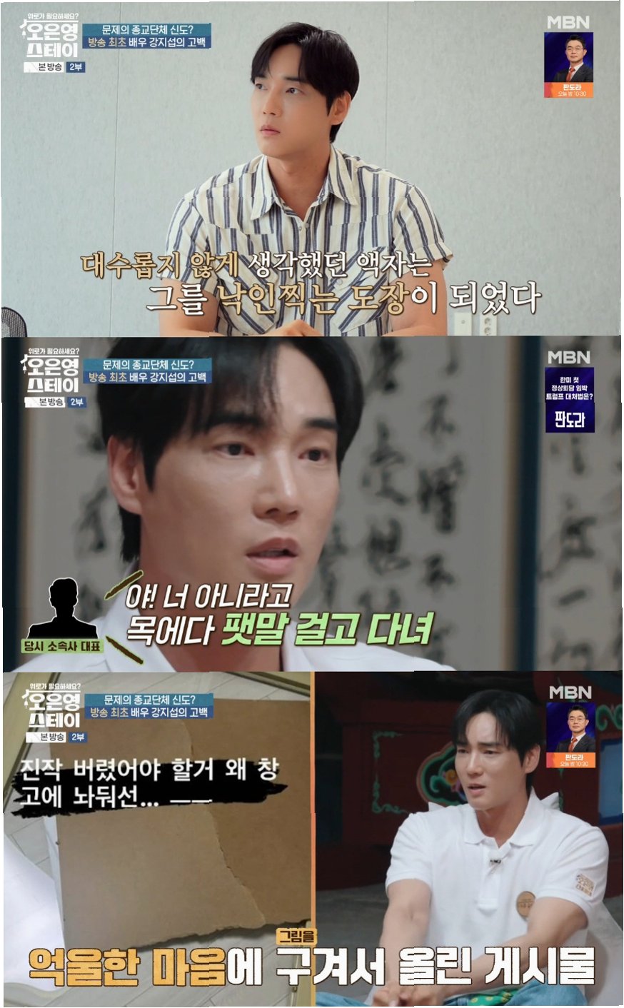 MBN '오은영 스테이'에 출연한 배우 강지섭이 종교단체 JMS(기독교복음선교회) 신도 논란에 대해 솔직하게 털어놓았습니다. 그는 대학생 시절 포교를 통해 해당 종교에 발을 들였지만, 2017년 쯤부터는 더 이상 나가지 않았다고 밝혔습니다. 강지섭은 자신이 무지했던 것을 죄라고 표현하며, 억울한 심정을 토로했습니다. 특히 범죄에 연루되지 않았음을 증명해야 하는 상황에 대한 어려움을 강조했습니다.