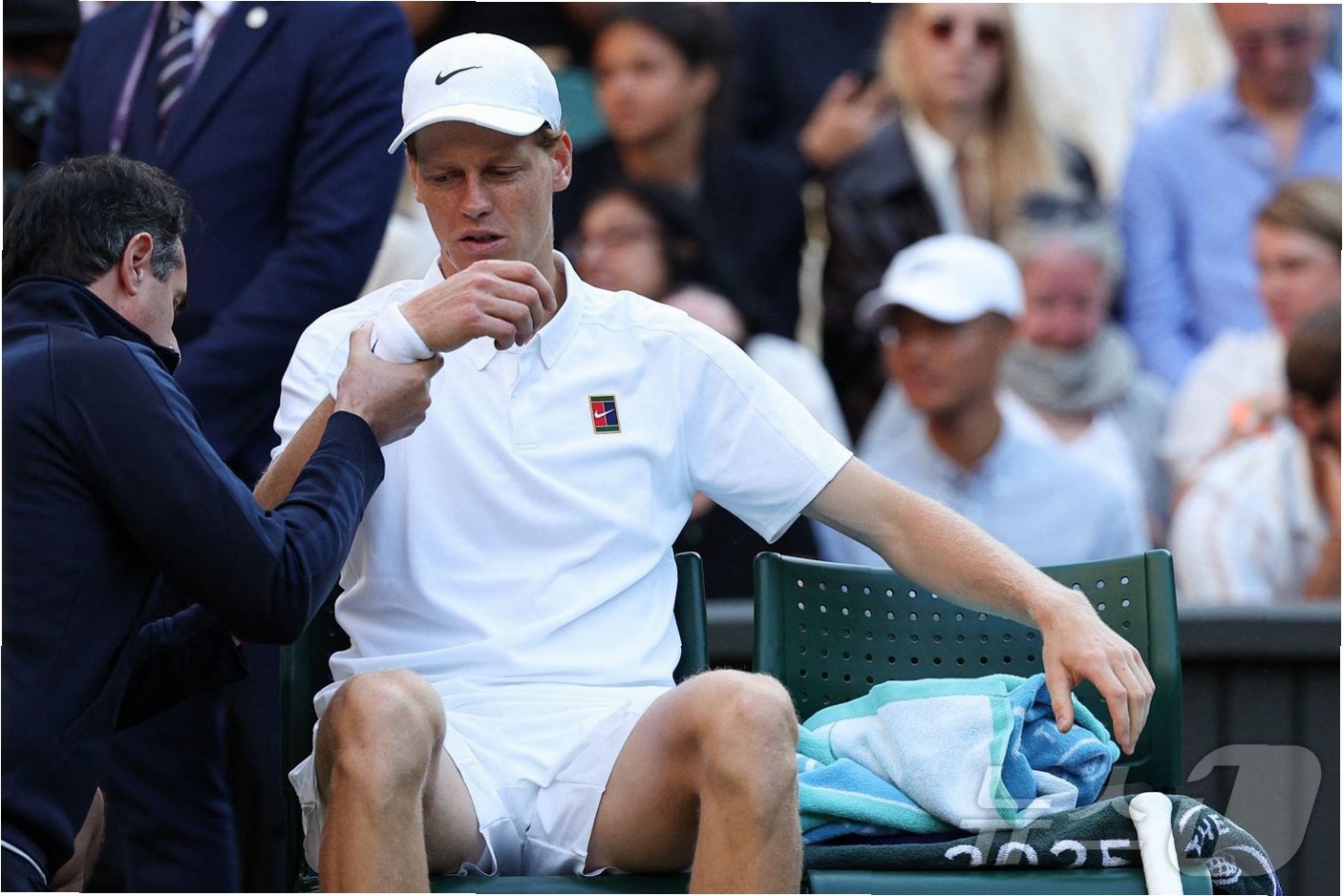 경기 시작부터 신네르는 평소와 다른 모습을 보였습니다. 첫 포인트부터 무기력한 모습, 머리에 얼음을 갖다 대는 모습 등, 그의 몸 상태가 정상이 아님을 암시하는 징후들이 나타났습니다. 23분 만에 0-5로 점수가 벌어지면서 결국 트레이너를 호출하기에 이르렀습니다.